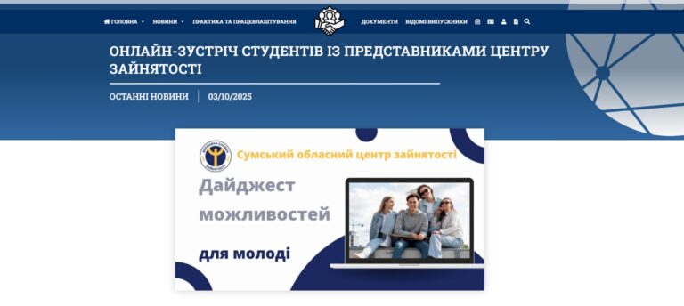 2 жовтня 2025 р. відбулась онлайн-зустріч здобувачів освіти випускних курсів ННІ права з начальником відділу профорієнтації Сумського обласного центру зайнятості Прокопенко Вікторією Володимирівною. До заходу