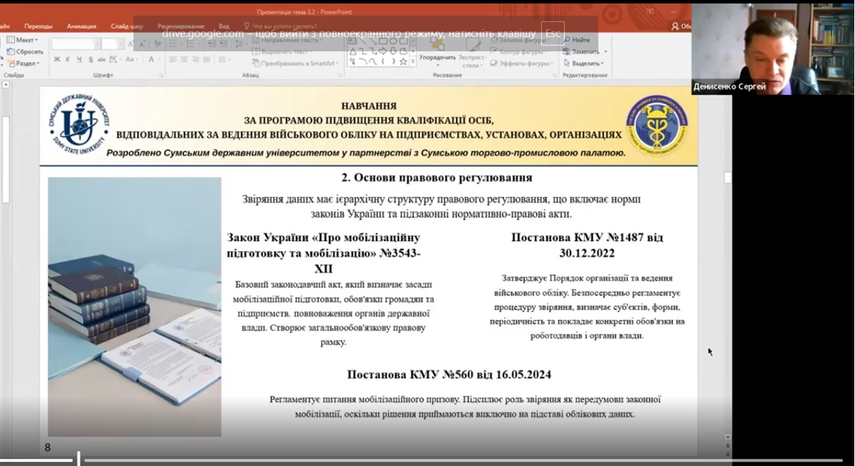 У Сумському державному університеті запроваджено курси за Програмою підвищення кваліфікації осіб, відповідальних за ведення військового обліку на підприємствах, в установах та організаціях. Серед викладачів програми – доцент кафедри Сергій Денисенко.